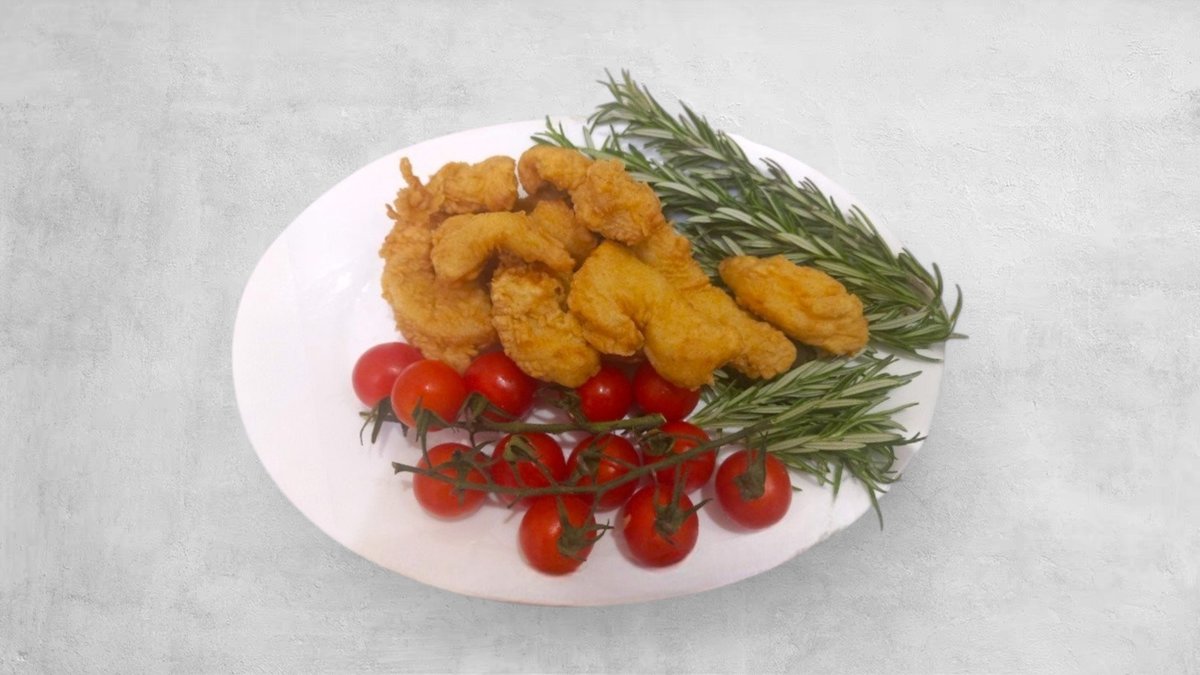 Vistas filejas nageti ar kartupeļiem frī, mērci un dzērienu
