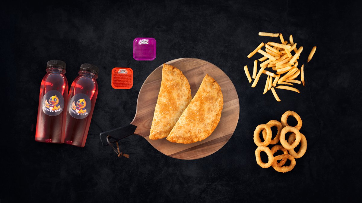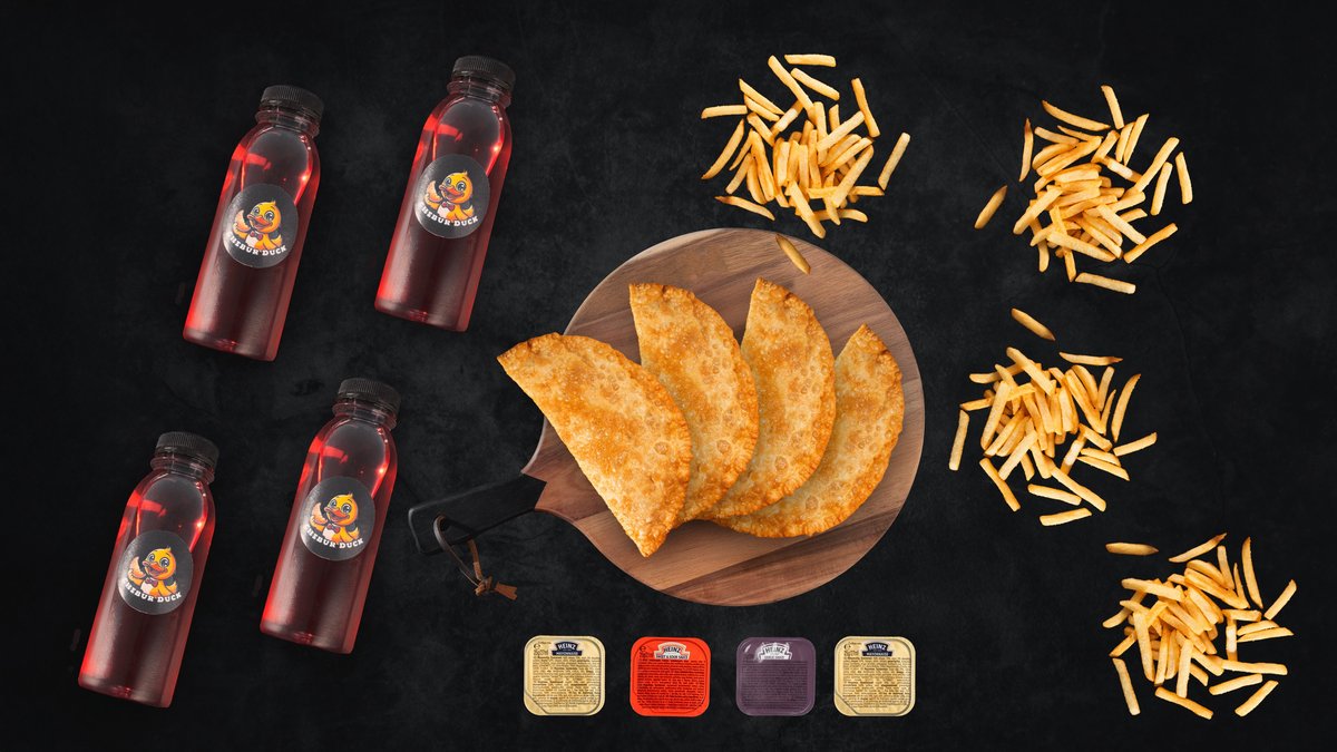 4 čebureki + 4 uzkodas + 4 mērces + 4 dzērieni