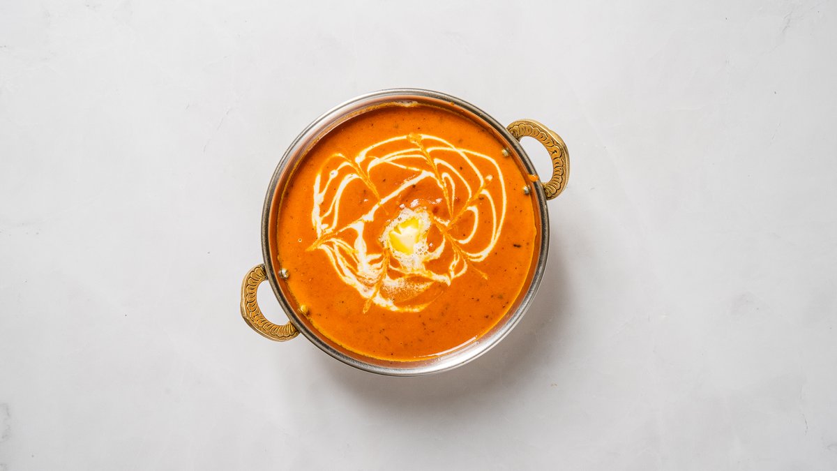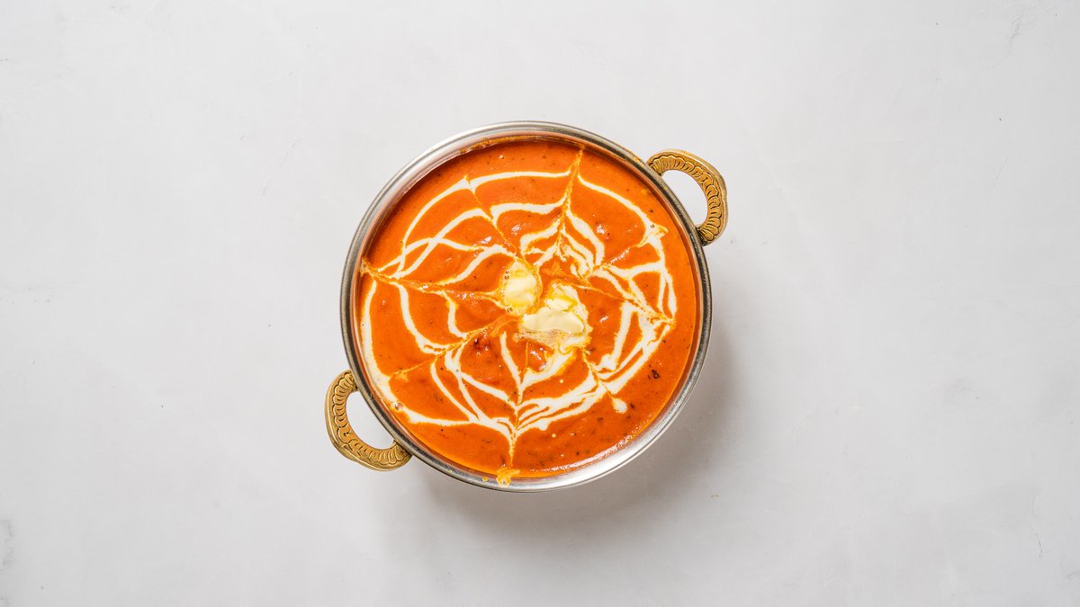 Marinēti bezkaulu vistas gabaliņi, tradicionāli pagatavoti tandoorā un pasniegti tomātu-krējuma mērcē, krējumā un indijas riekstos | Marinated boneless chicken pieces, traditionally cooked in tandoor & served in a tomato-cream sauce, cream & cashew