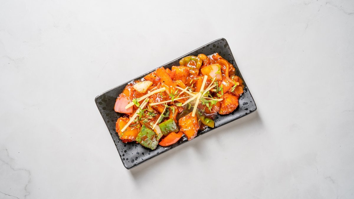Kraukšķīgs indiešu siers ar sojas mērci, etiķi, papriku, svaigu čili un sasmalcinātu ķiploku | Crispy Indian cheese with soy sauce, vinegar, capsicum, fresh chilli and chopped garlic