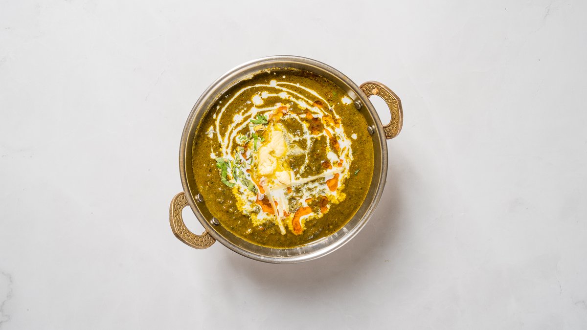 Klasisks indiešu ēdiens, kas pagatavots no spinātiem, sieru un sinepju lapām. | Classic Indian dish made with spinach, cheese and mustard leaves