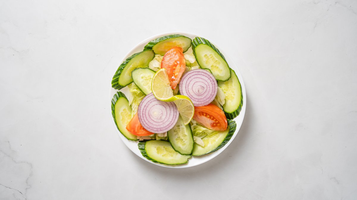 Gurķis, sīpoli, tomāts, salātlapa, burkāns, citrons