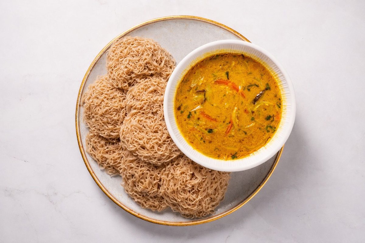 Autentisks Šrilankas ēdiens, gatavots no brūno rīsu miltiem, veidots smalkās, nūdelēm līdzīgās stīgās un tvaicēts, lai iegūtu vieglu un gaisīgu tekstūru. Pasniedz ar bagātīgiem, krēmīgiem kokosriekstu piena ēdieniem, tostarp piena kariju