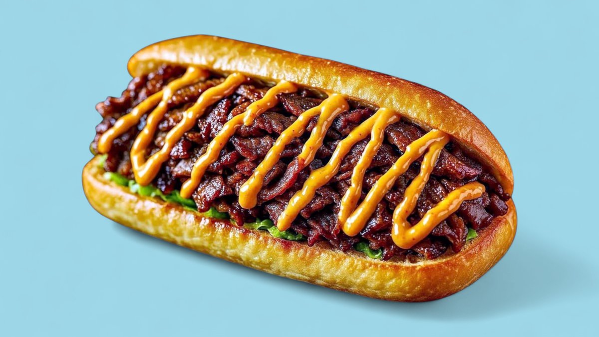 Svaigi cepta hotdog maize, kabanos desiÅa, bekons, siers, Ä·iploku mÄrce, baltÄ BBQ mÄrce