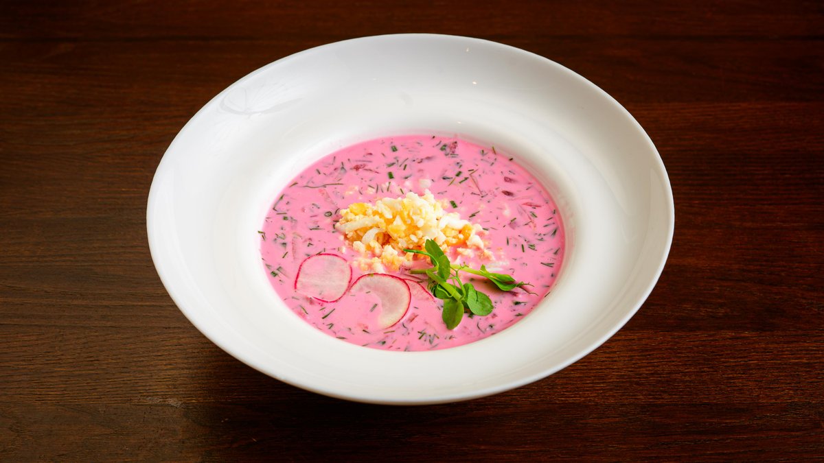 Atsvaidzinoša aukstā biešu zupa, lieliski piemērota siltākām dienām.