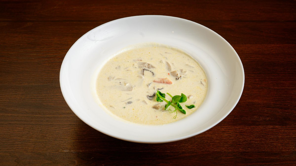 Krēmīga un garšīga zupa, kas pagatavota no sēnēm un siera.