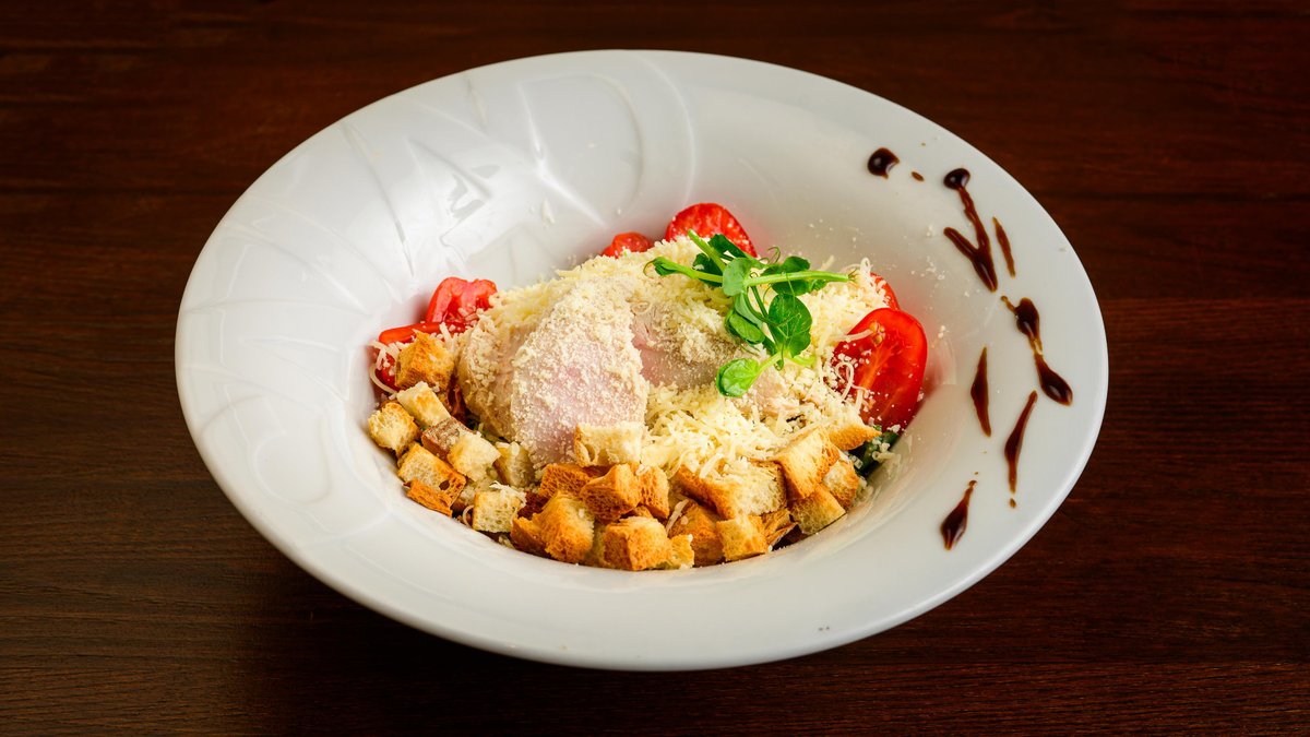 Klasiski Cēzara salāti ar maigi ceptu vistu.