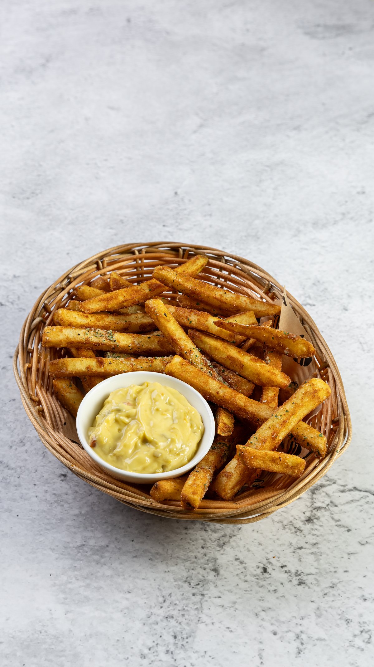 Saldo kartupeļu frī ar cieto sieru un medus-sinepju majonēzi 🥕