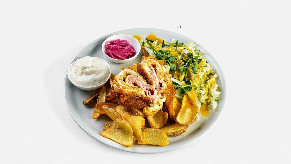 Divas vistas karbonādes Ezīša gaumē ar vārītiem-ceptiem kartupeļiem, biešu un coleslaw salātiem + 1L Cido sula, pēc izvēles - Apelsīnu/Ābolu/Ananasu/Tomātu sula"