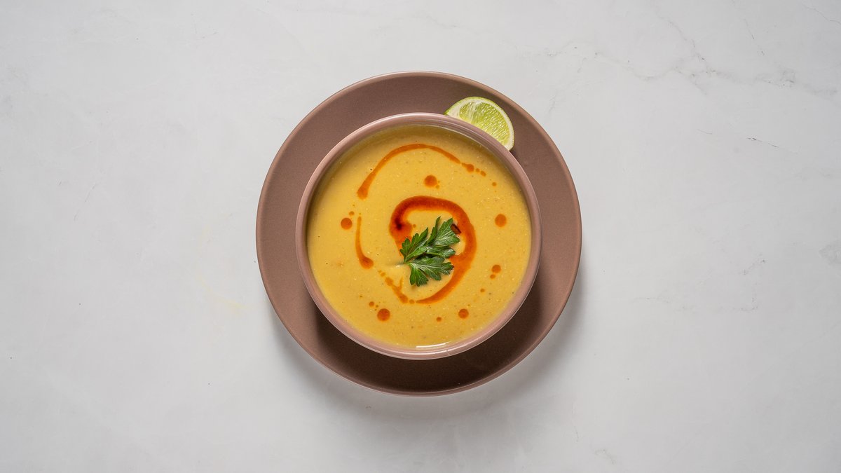 Sātīga un aromātiska zupa, gatavota no sarkanajām lēcām, dārzeņiem un garšvielām. Bez gaļas un piena produktiem.