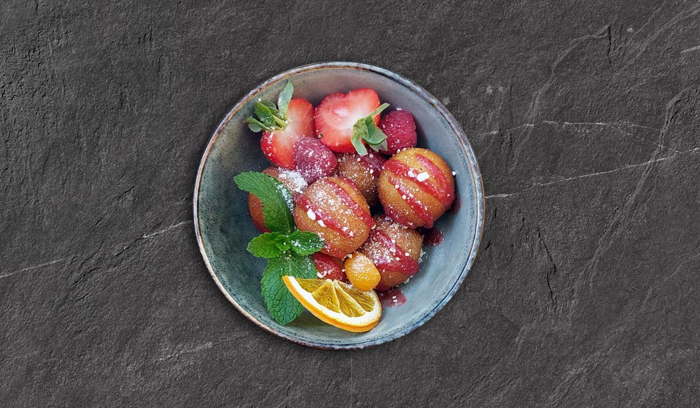 Biezpiena bumbiņas (6) ar ogu mērci