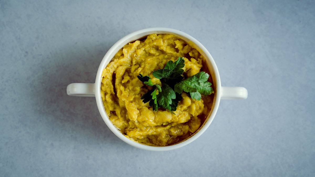 Sķelto zirņu biezenis ar fenfeļa sēklām