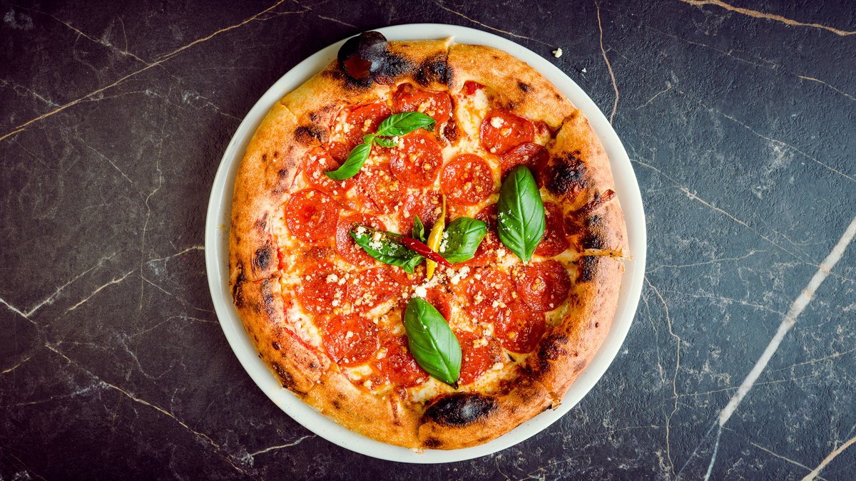 Tomātu mērce,Mocarella,Pepperoni des,Extra Virgin olīveļļa,baziliks,chilli