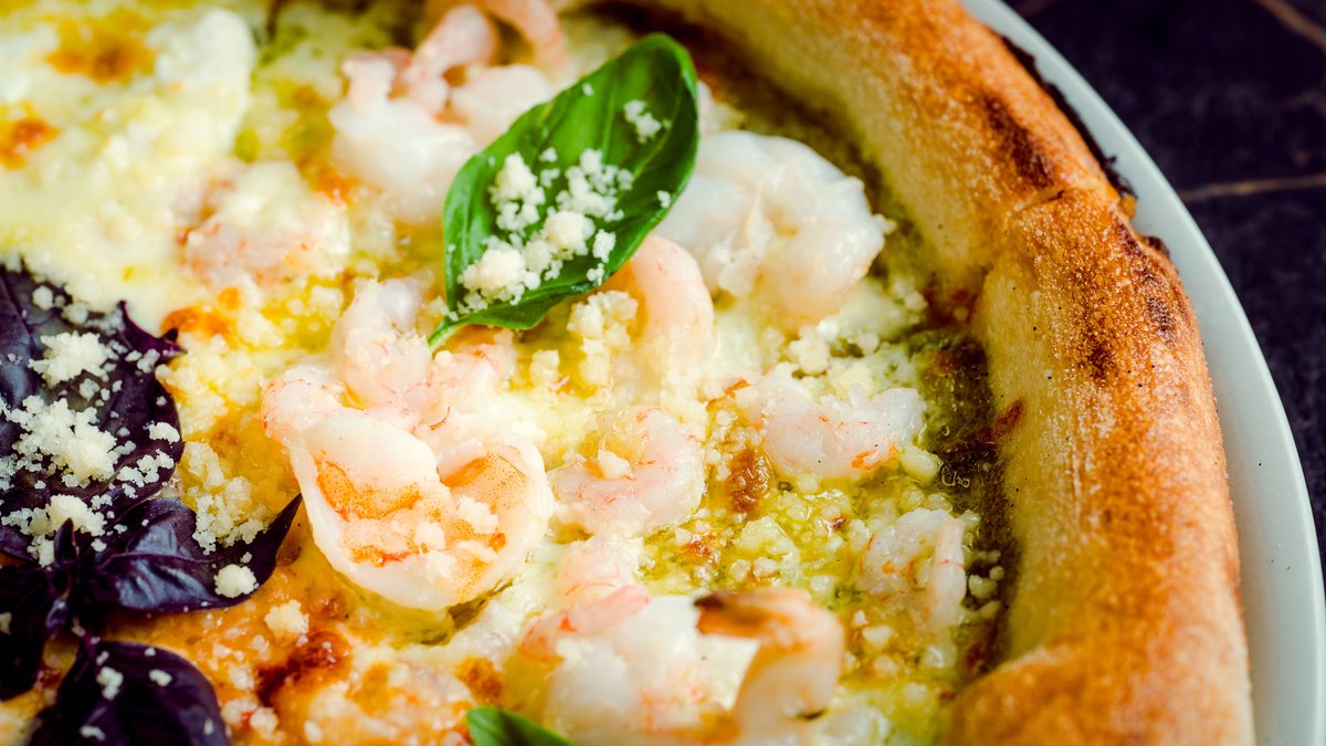 ķoploku aioli, laša fileja, garneles, Mozarella, olīvas, kaperi, Parmigiano Reggiano, baziliks, Extra Virgin olīveļļa
