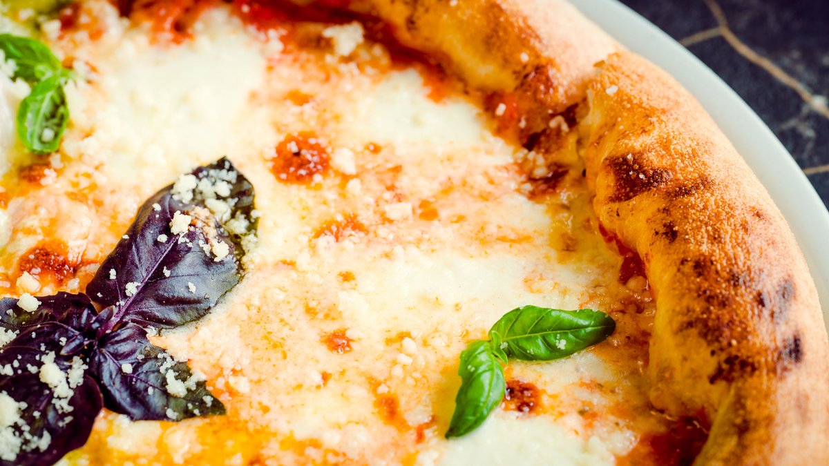 Tomātu mērce, Mocarella siers, Parmigiano Reggiano, Extra Virgin olīveļļa, baziliks