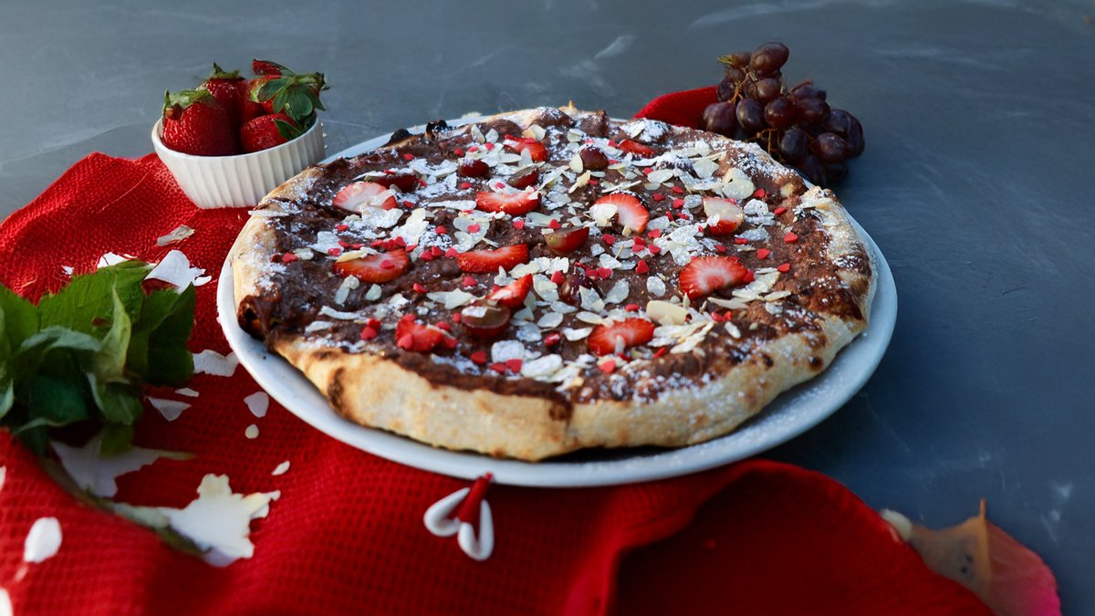 Saldā Nutellas pica ar zemenēm un mandeļu skaidiņām