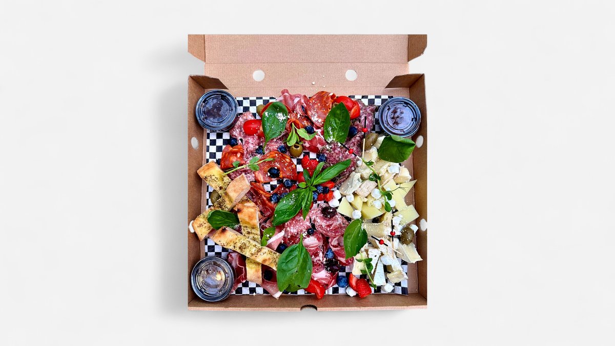 Itāļu gaļas plate ar olīvām, sieriem, saulē kaltētu tomātu tapenādi un medu