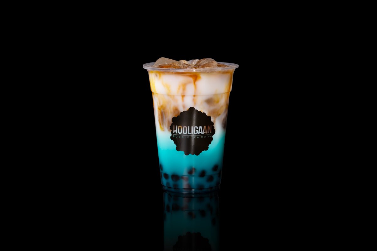 Tapiokas bobas, Zilais curacao sīrups, Kokosriekstu sīrups, Piens, Non Dairy pulveris