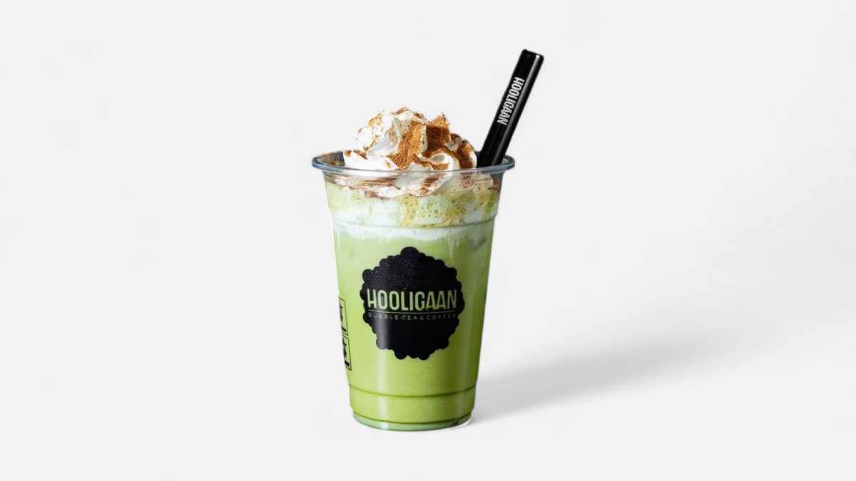 Ābolu bobas, Yuzu sīrups, Citrona sīrups, Ledus, Gāzēts ūdens, Matcha