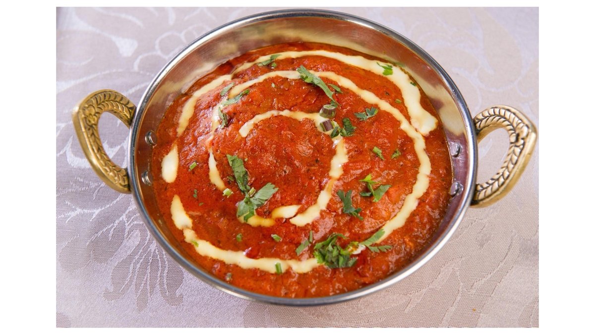 Ēdiens, kas pagatavots maigā Indijas riekstu-krējuma mērcē