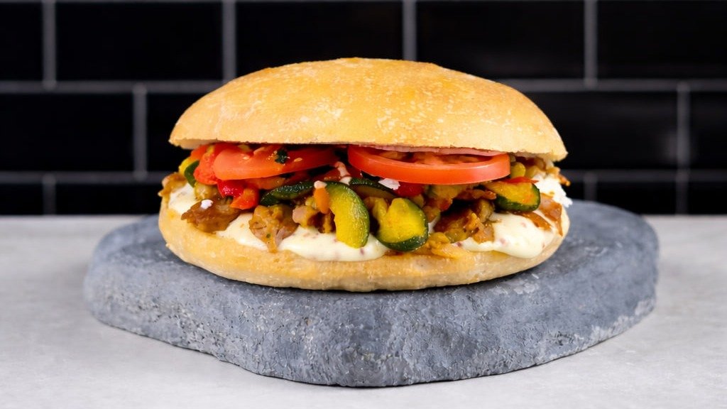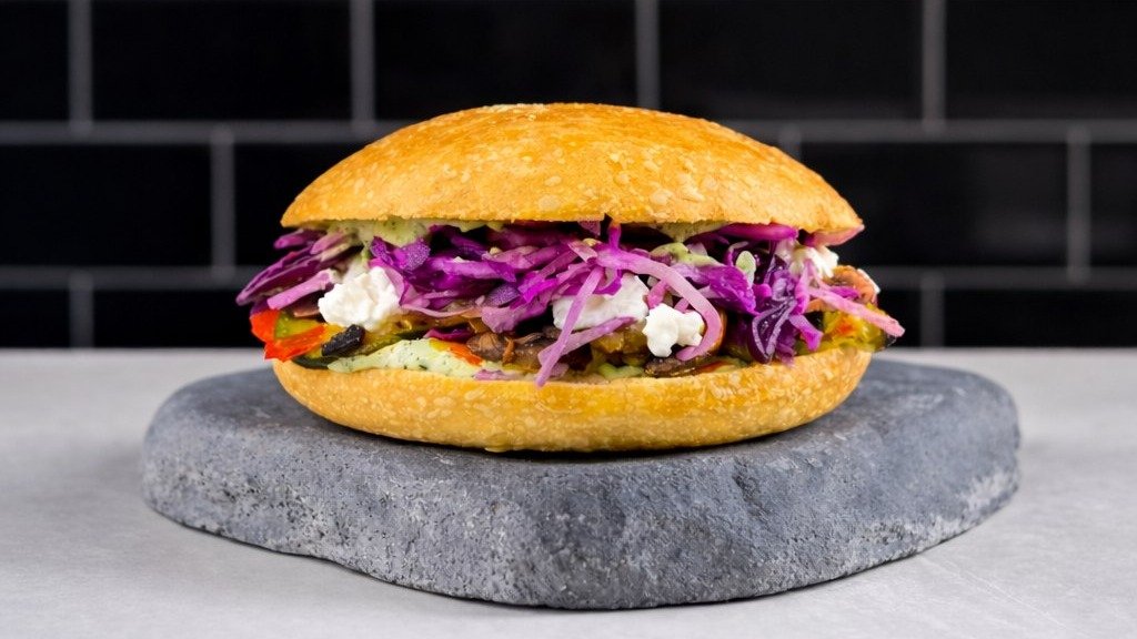 Pašgatavota Fokačas bulciņa Grilēti dārzeņi (paprika, cukini, burkāni) Ceptas sēnes Svaigais siers Karamelizēti sīpoli Kāpostu salāti Zaļumu mērce