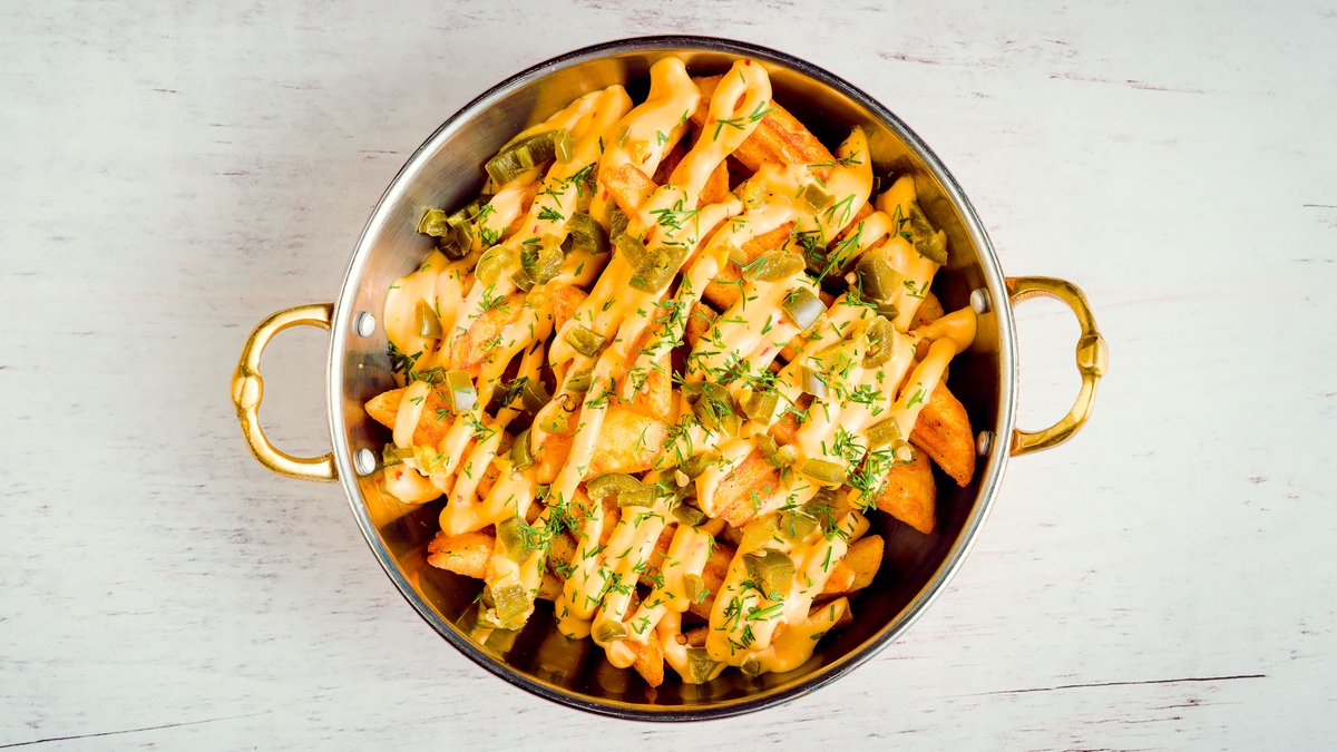 Paprikas frī kartupeļi, siera chilli mērce, jalapeno