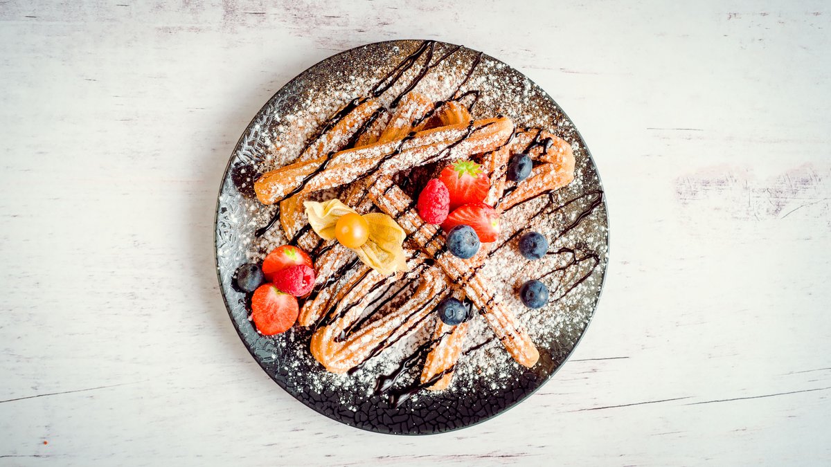 Tradicionāls spāņu deserts, pārkaisīti ar cukura un kanēļa maisījumu