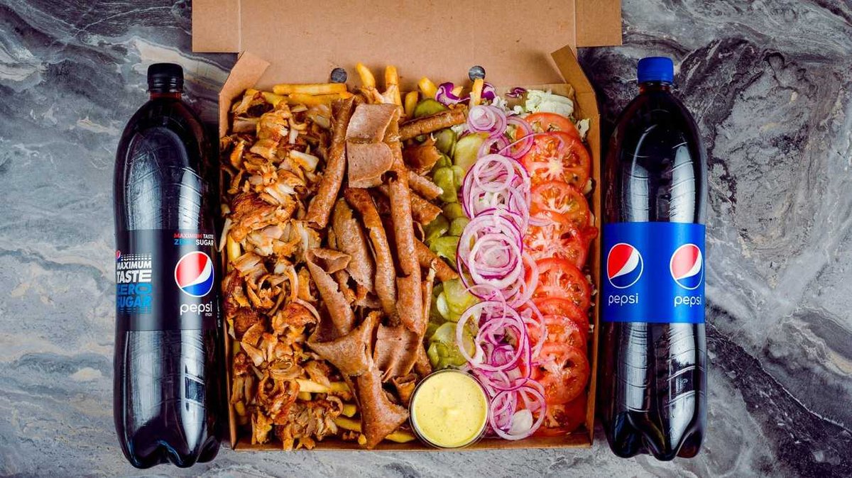 2x Lielas kebabu kastes, 2x dzēriens 330ml