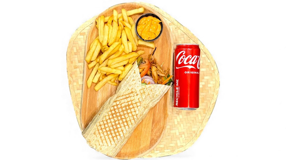 Pita kebabs + Frī kartupeļi + Dzēriens