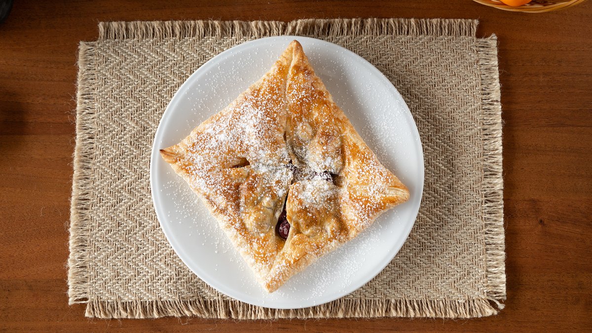 Kārtāinas mīklas deserts ar ķiršu un šokolādes pildījumu