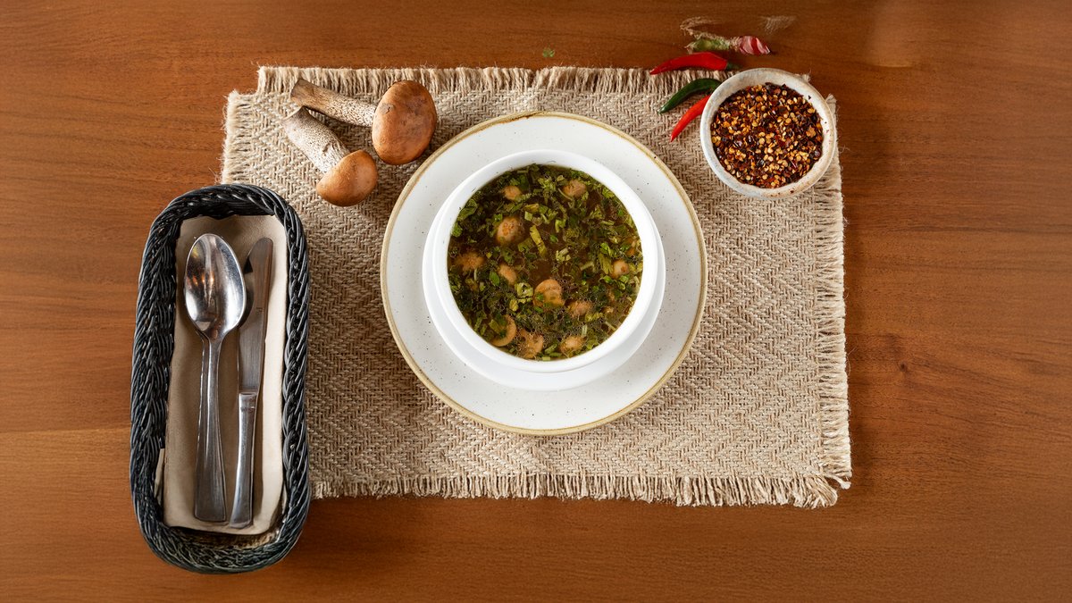 Vistas buljona zupa ar baravikām, šampinjoniem un koriandru