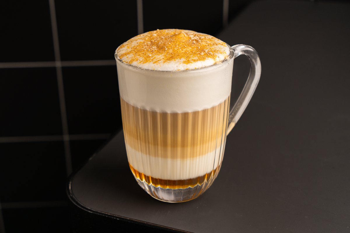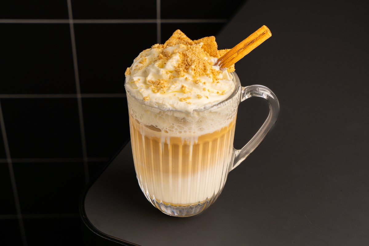 Latte ar kanēļmaizīšu garšu, putukrējumu un maltām Cini Minis
