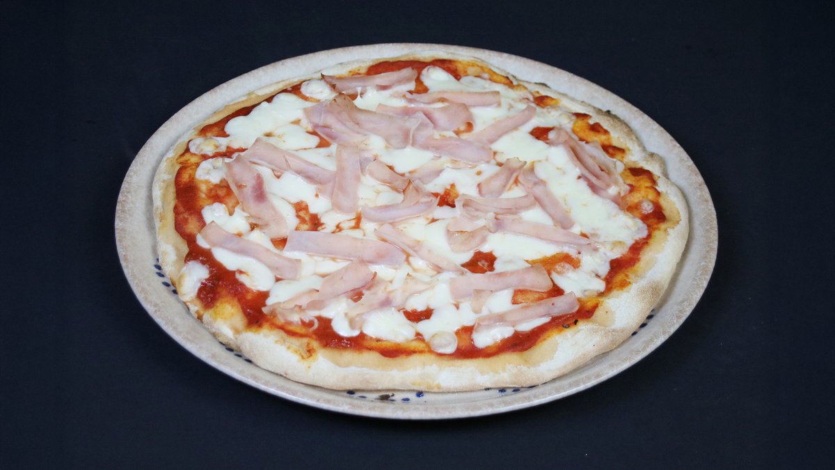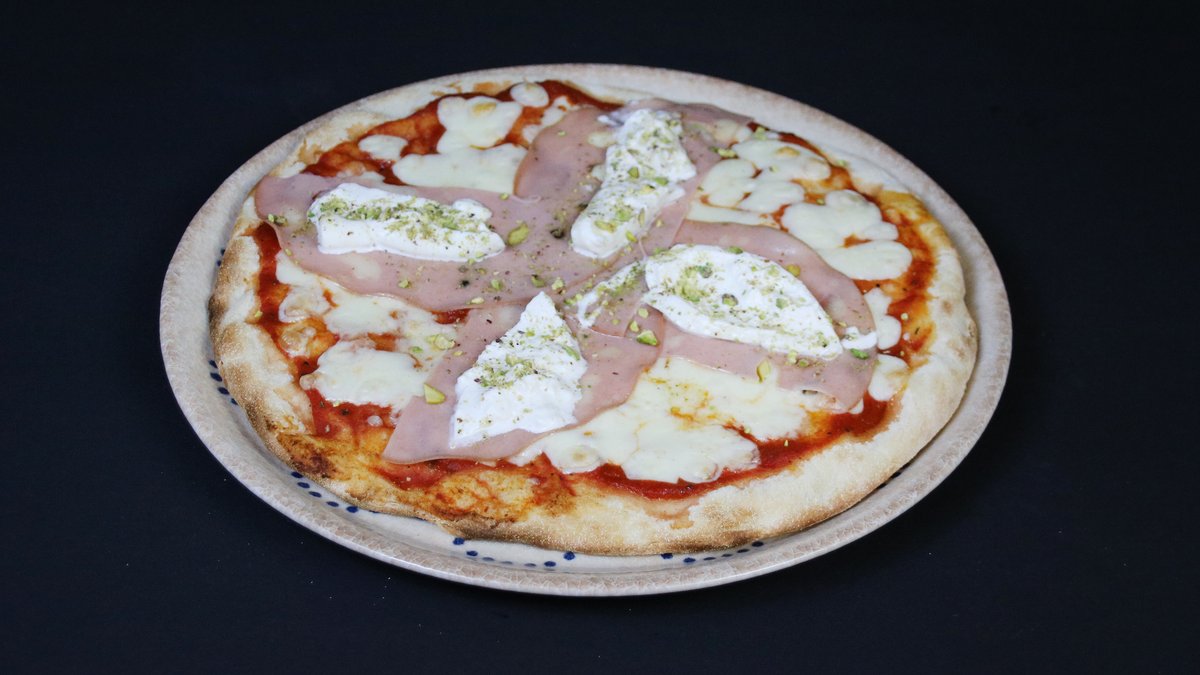 Prosciutto Cotto, Mozzarella Fior di Late, picas mērce, bazilika olīveļļa