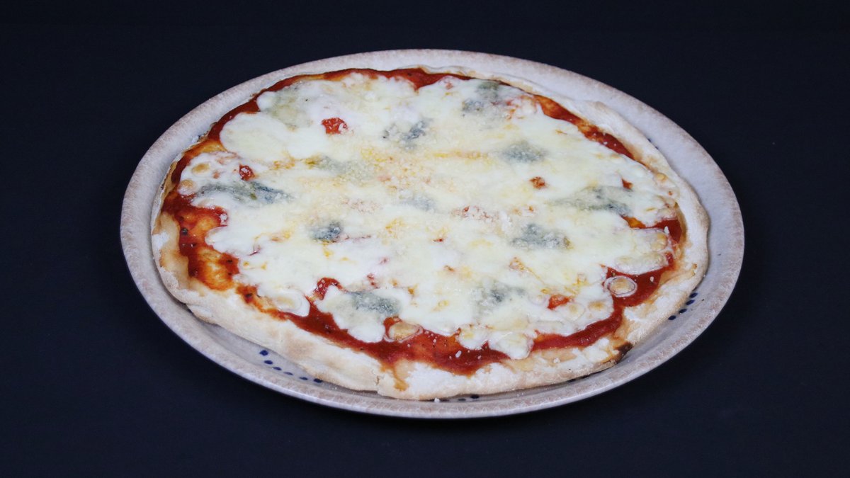 Mozzarella Fior di Late, Gorgonzola Piccante, Provola affumicata, Grana Padano, picas mērce, bazilika olīveļļa