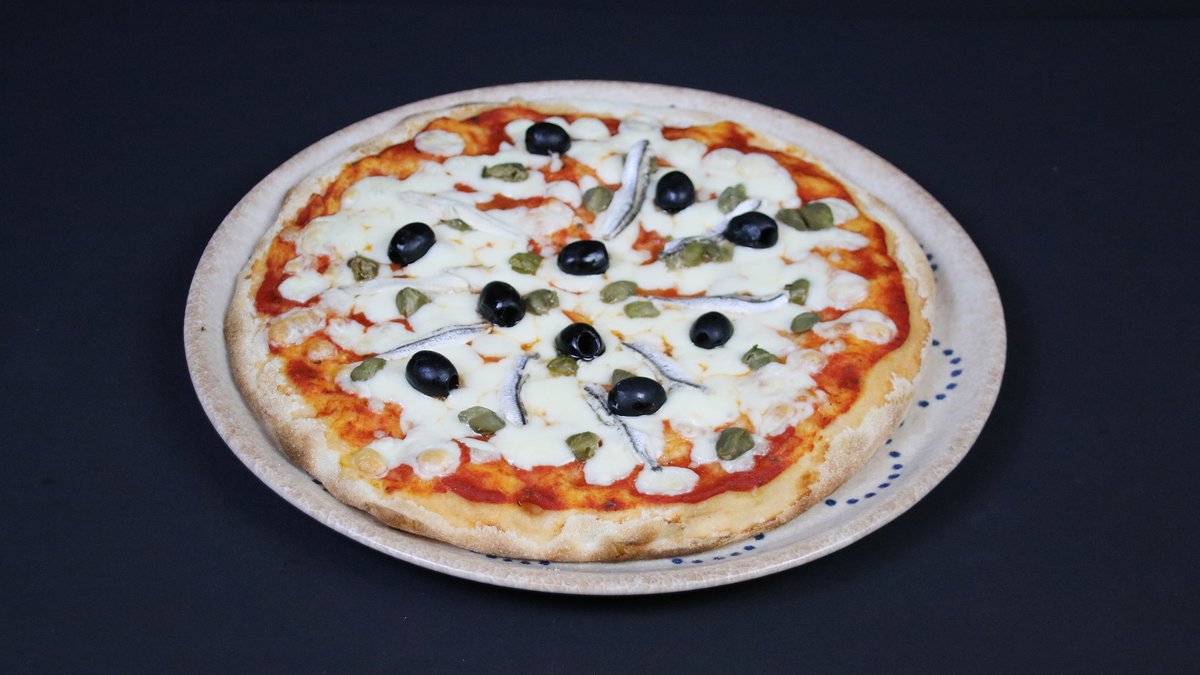 Anšovu filejas, kaperi, olīvas, Mozzarella Fior di Late, picas mērce, bazilika olīveļļa