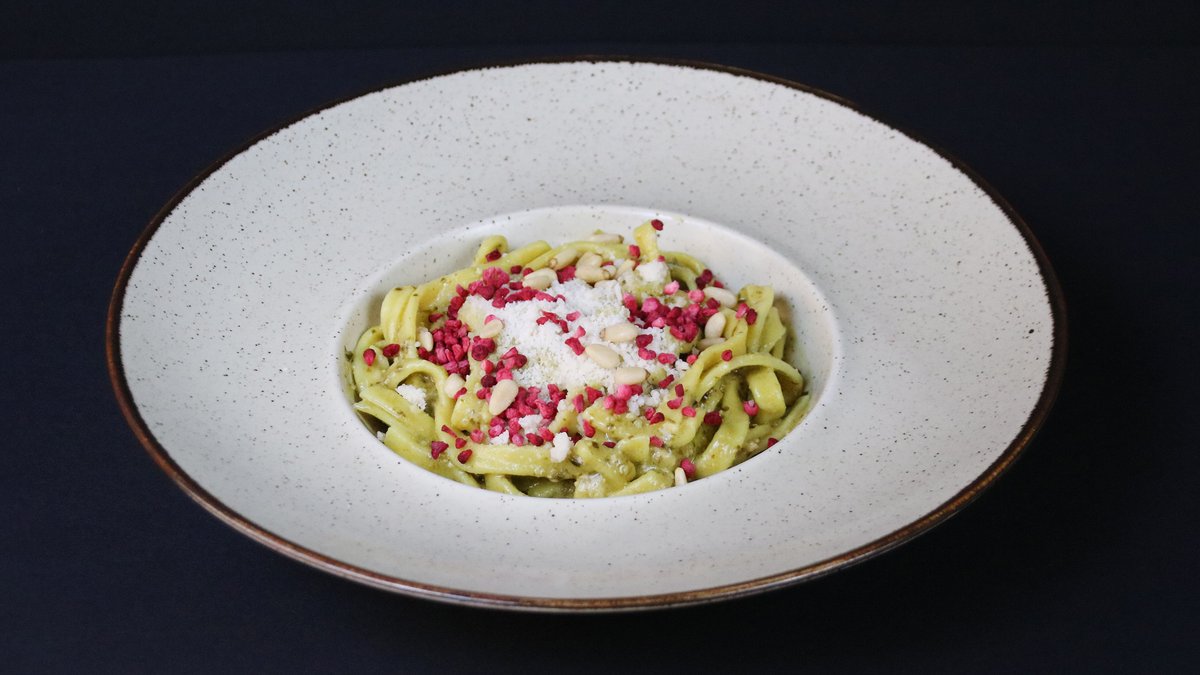 Tagliatelle ar pesto Genovese, ciedru riekstiem, parmezāna sieru