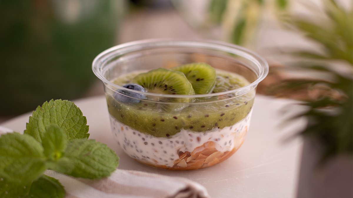 Jogurta-čia deserts ar mandelēm un kivi biezeni 170g