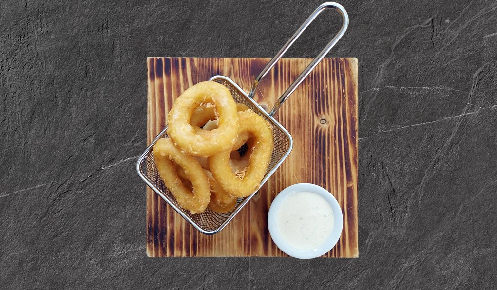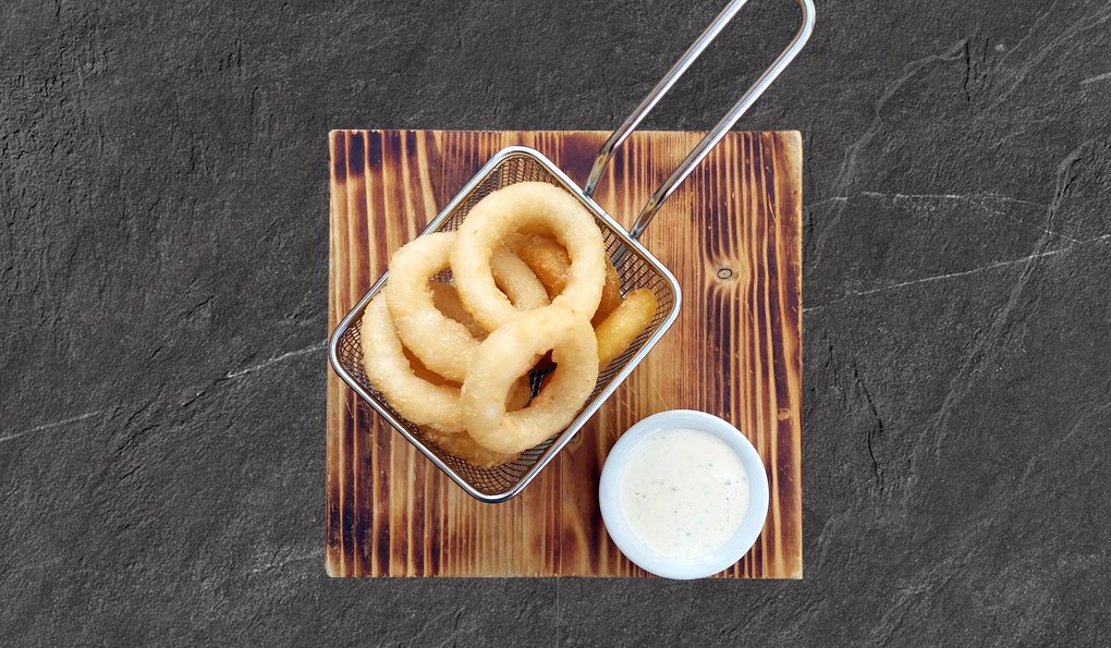 Sīpolu gredzeni ar ķiploku mērci (10) 🌱