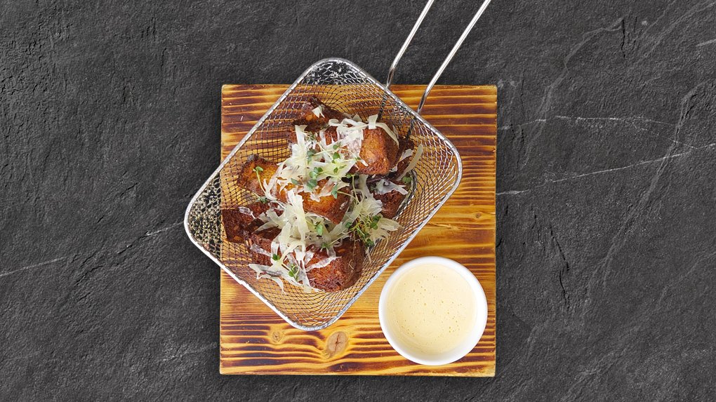 Fritēti kartupeļi ar trifeļu eļļu un parmezānu