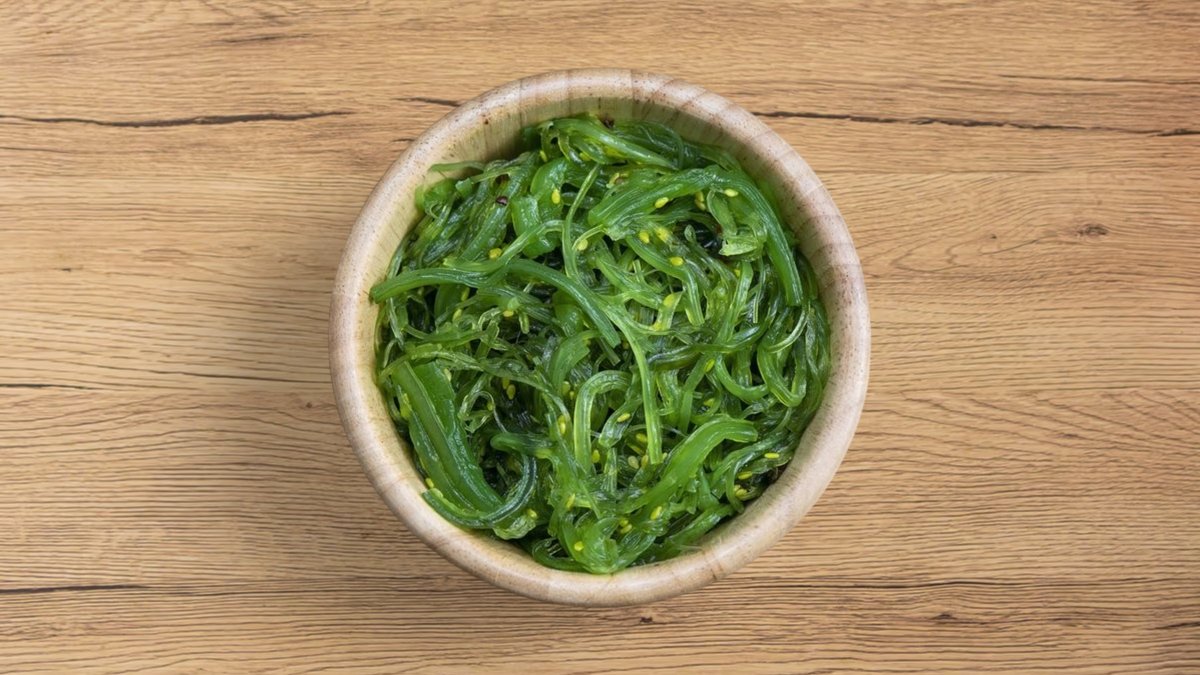 Klasiskie Wakame jūras zāļu salāti ar riekstu mērci. Attēli ir orientējoši un tikai ilustratīviem nolūkiem. Iepakojums ir iekļauts ēdiena cenā.
