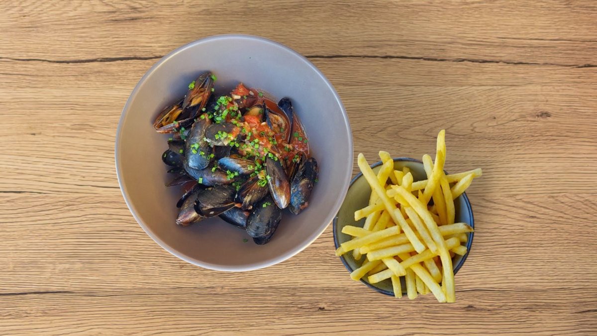 Mīdijas, 0,5kg. Saldais krējums, sipoli, selerija, paprika. Attēli ir orientējoši un tikai ilustratīviem nolūkiem. Iepakojums ir iekļauts ēdiena cenā.
