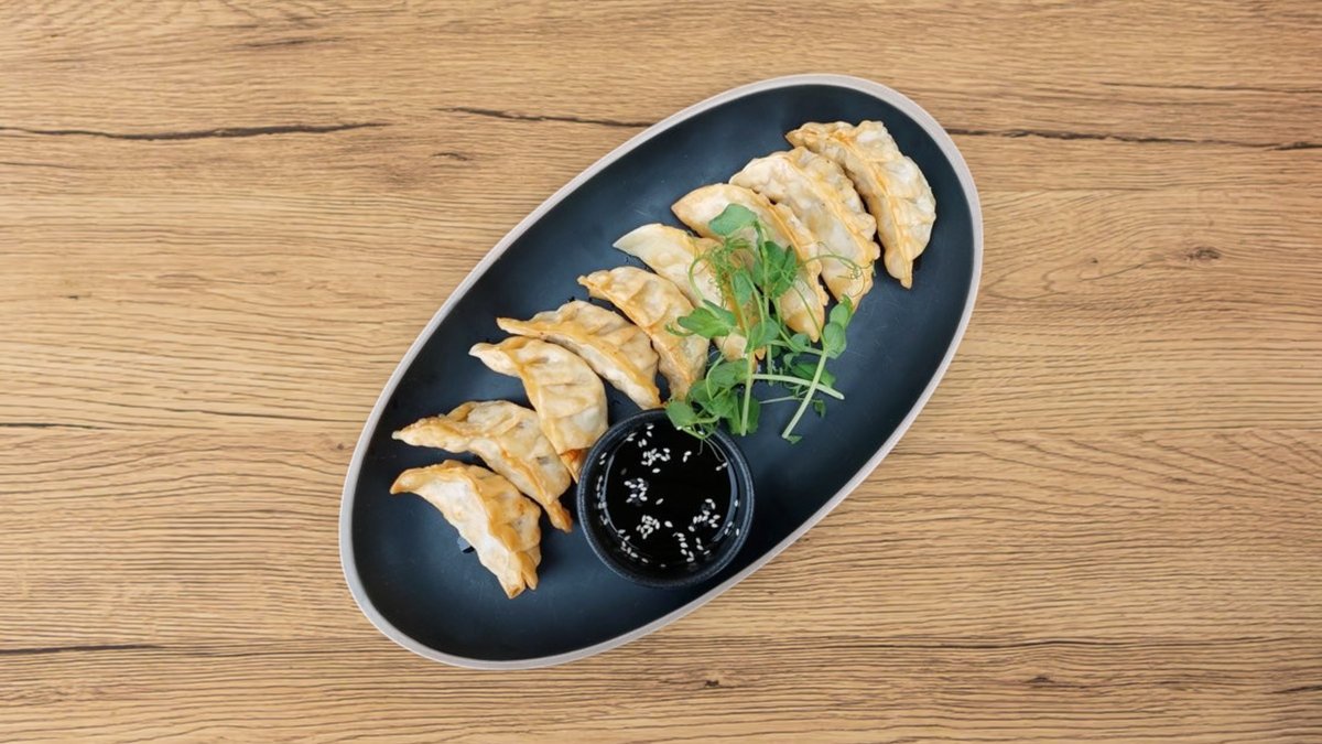 Cepti Japānu pelmeņi ar vistu un dārzeņiem. Attēli ir orientējoši un tikai ilustratīviem nolūkiem. Iepakojums ir iekļauts ēdiena cenā.