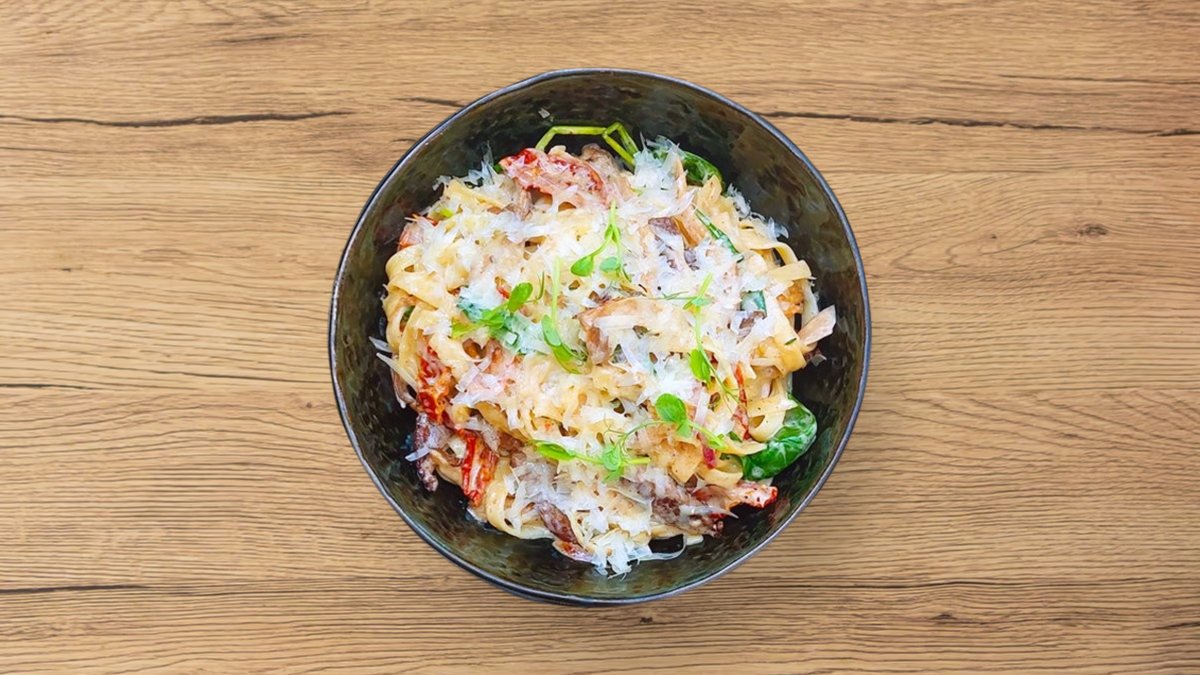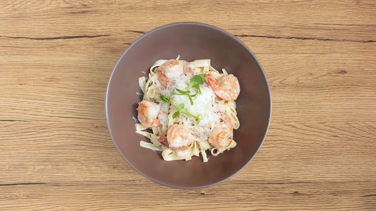 Pasta tagliatelle ar tigergarnelem saldkrējuma mērcē
