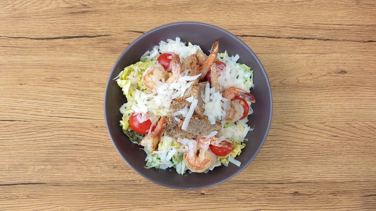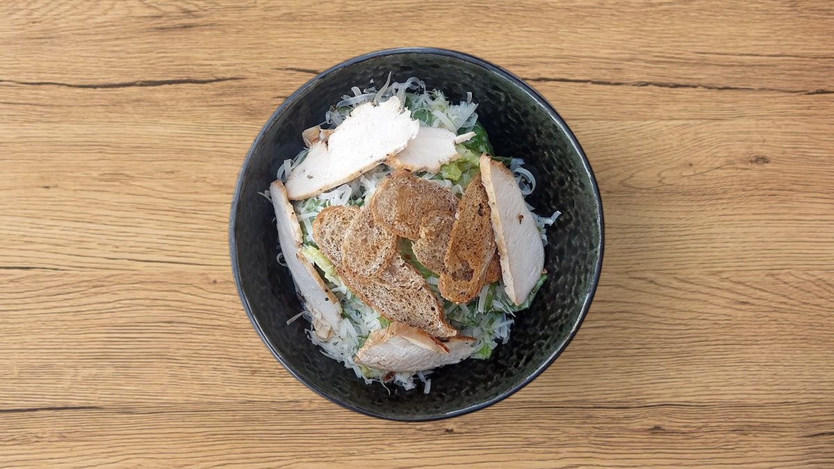 Romiešu lapas, anšovu mērce, cietais siers, grauzdiņi. Attēli ir orientējoši un tikai ilustratīviem nolūkiem. Iepakojums ir iekļauts ēdiena cenā.