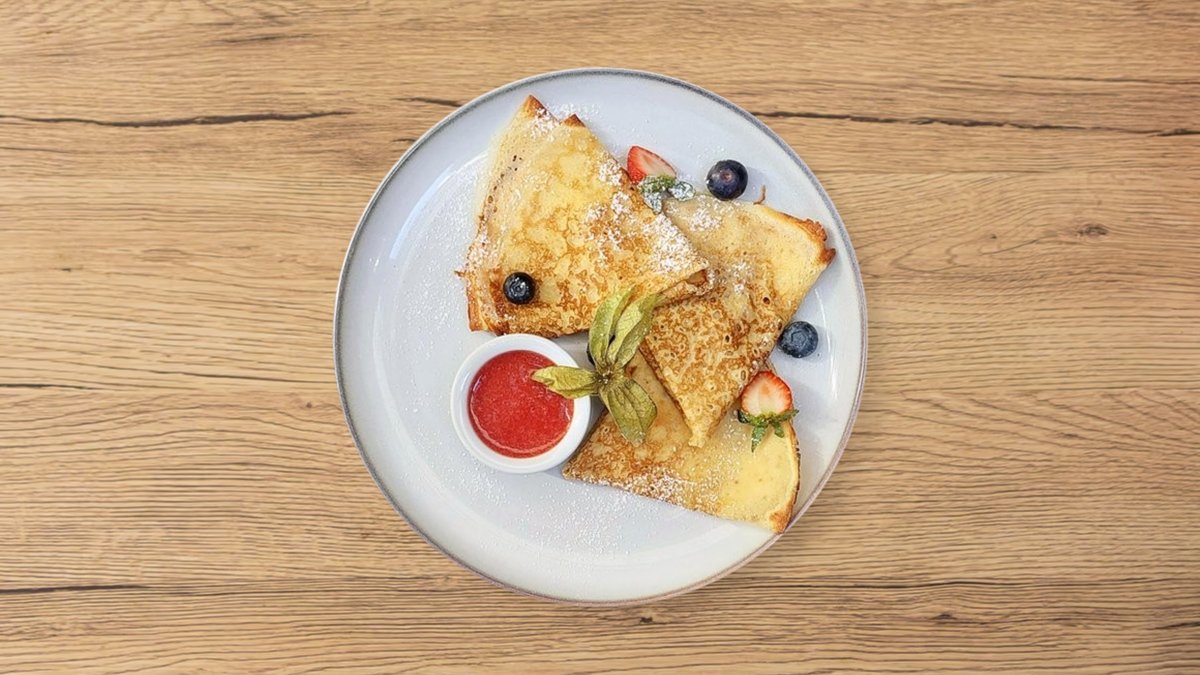 Plānās pankūkas ar ogu mērci un svaigām ogām