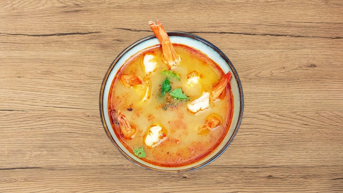 Tilpums 300 ml. Tradicionālā Taizemes Tom Yum zupa. Sēnes, paprika, sīpoli, tomāti, kokospiens, kinza. Attēli ir orientējoši un tikai ilustratīviem nolūkiem. Iepakojums ir iekļauts ēdiena cenā.