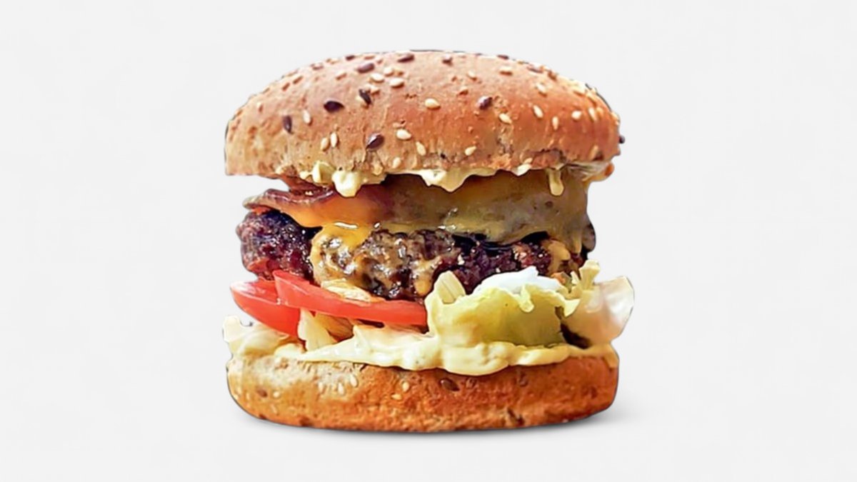 Burgermērce, lēdus salāti, tomats, gurķis, bekons, sīpolu marmelāde, siersi. Gaļa tiek pagatavota medium pakāpē. Attēli ir orientējoši un tikai ilustratīviem nolūkiem. Iepakojums ir iekļauts ēdiena cenā.