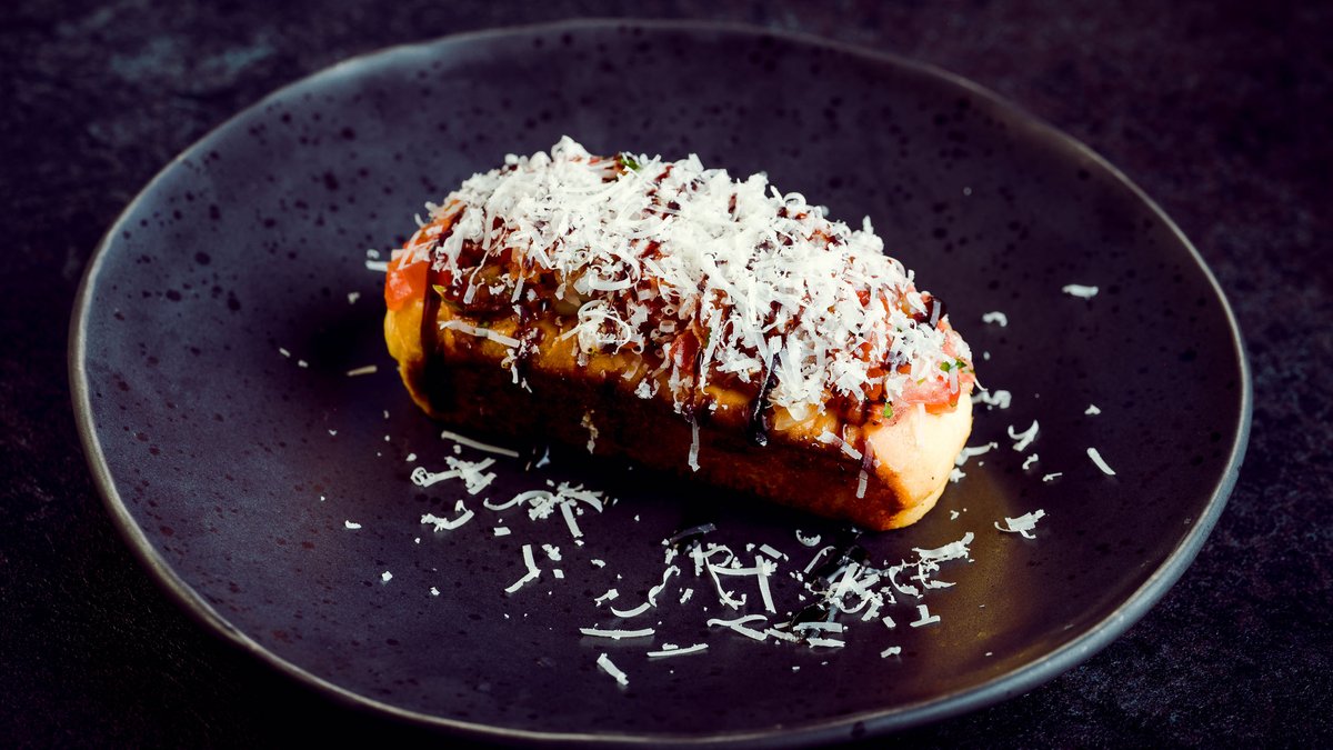 Brioche maizīte, sēnes, trifele, Stracciatella siers, aveņu balzamiko krēms