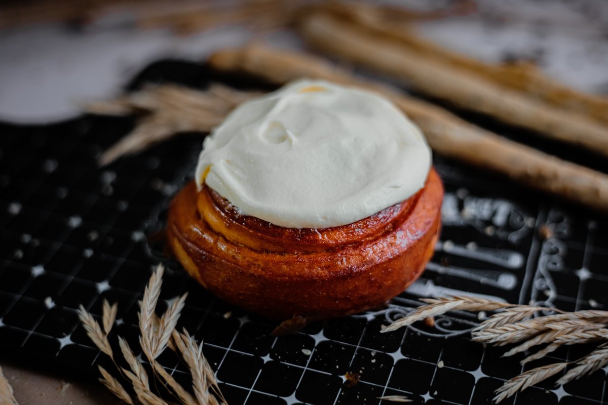 Svaigi cepta kanēļmaizīte, kura gatavota no brioš mīklas, kas bagātīgi klata ar maigu siera krēmu
