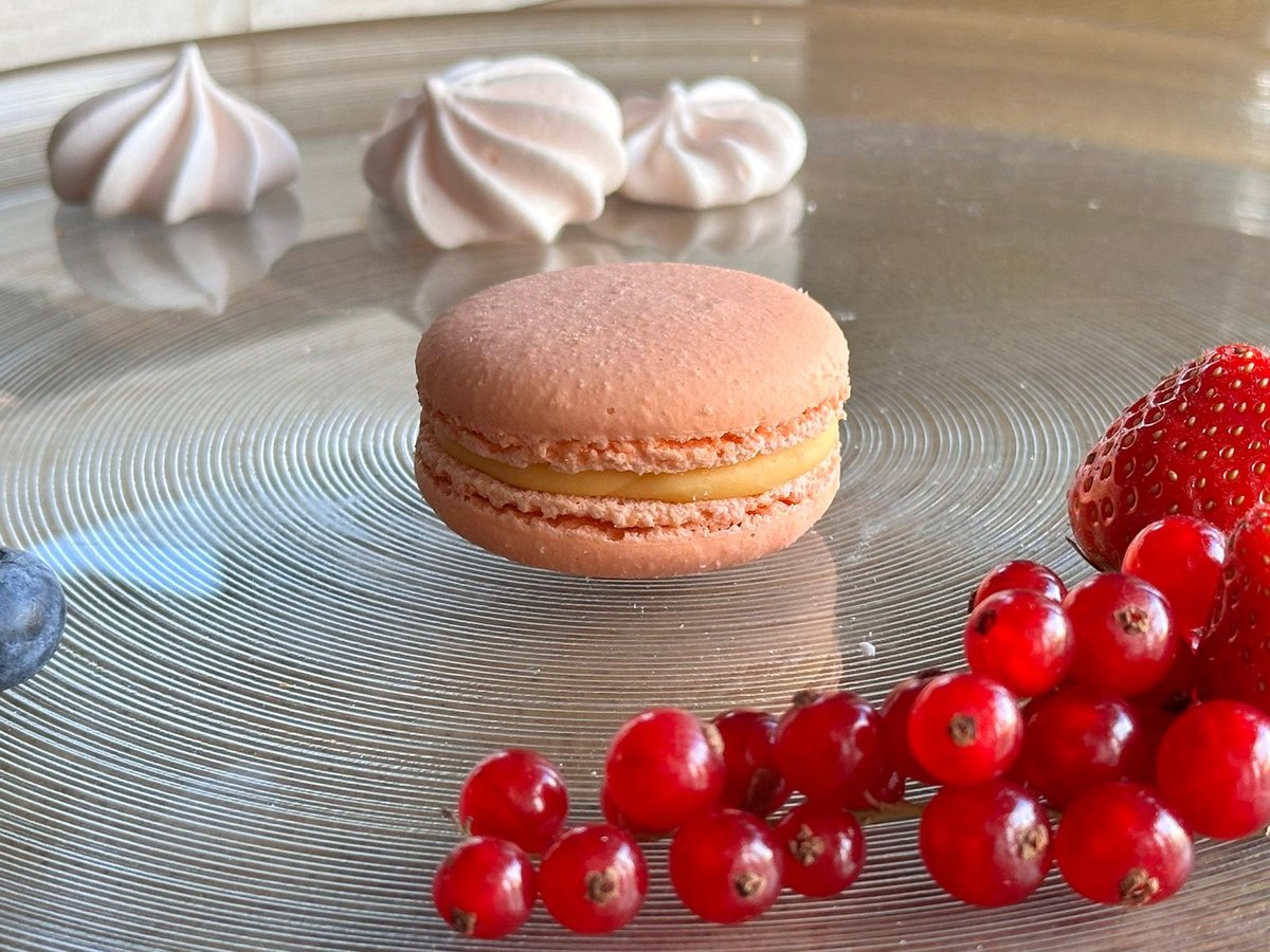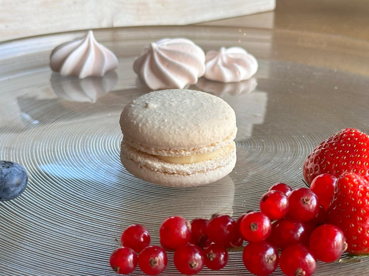 Gaisīgi mandeļu merringu cepumi, kuri pildīti ar maigu smiltsērkšķu-marakujas un baltas šokolādes pildījumu